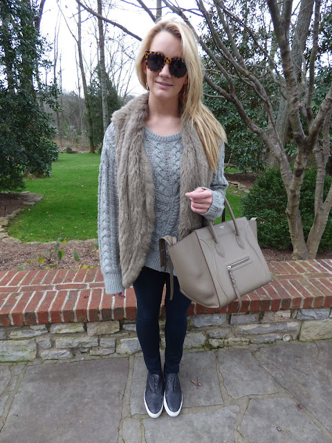 { sunnies: Crap Eyewear // vest: June // sweater: One Teaspoon // bag: Celine // jeans: J Brand // sneakers: Vince }